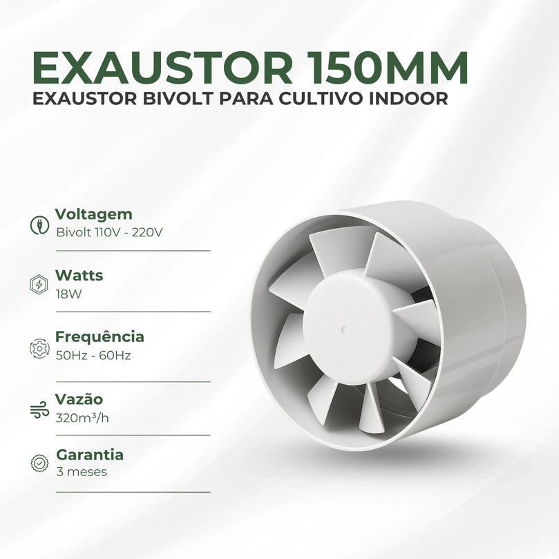 Exaustor para Cultivo Indoor 150mm Bivolt - Alta Eficiência e Baixo Ruído!
