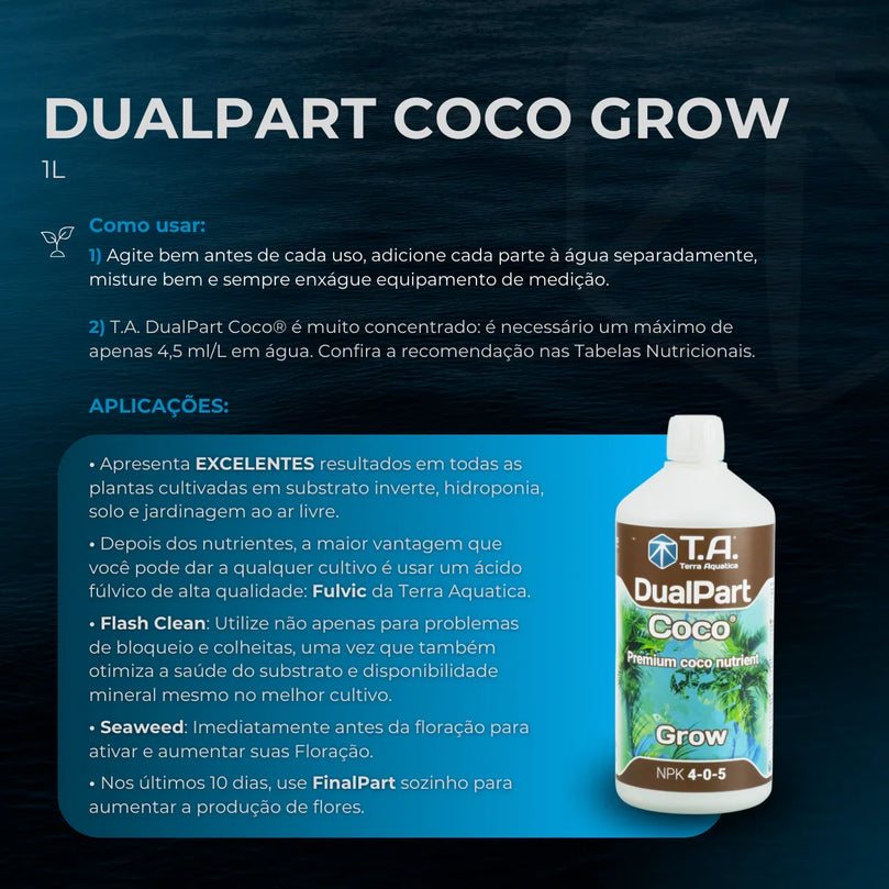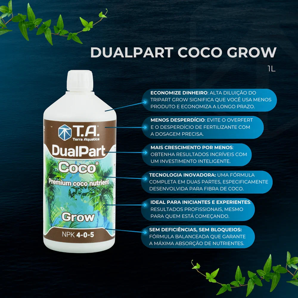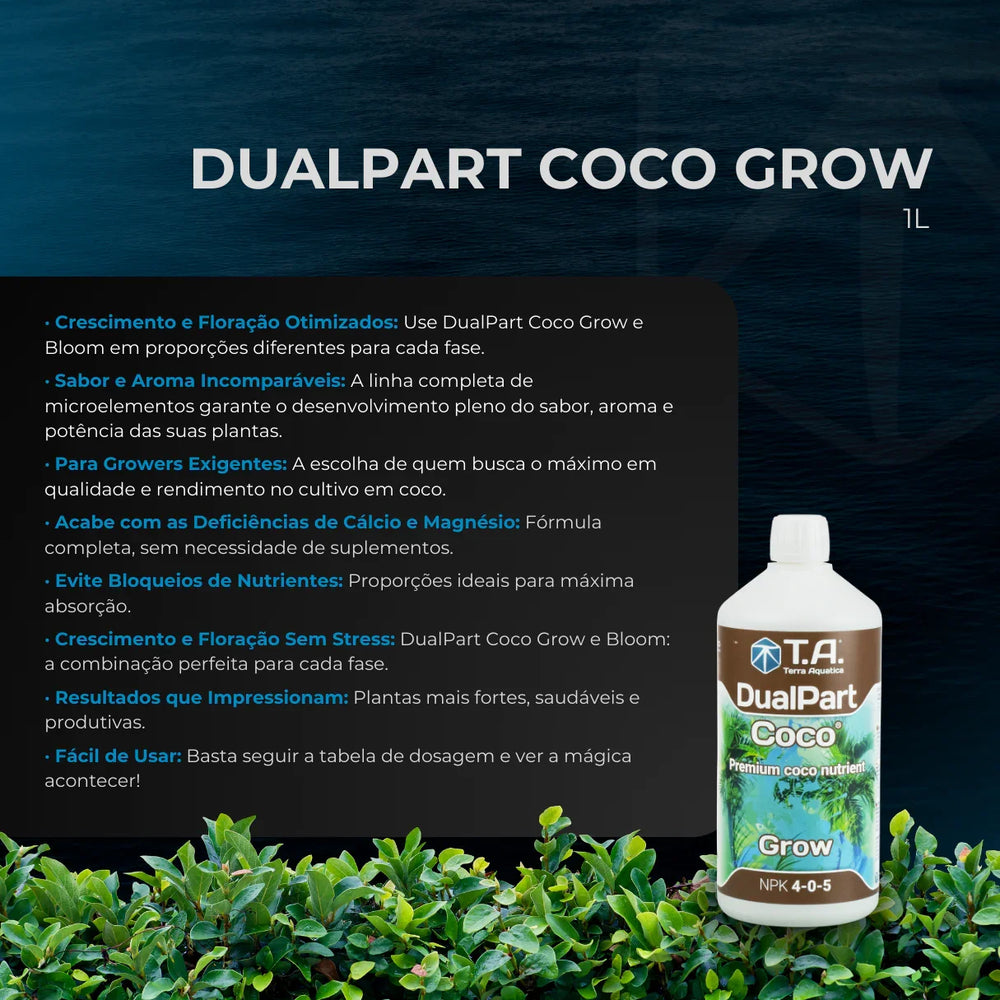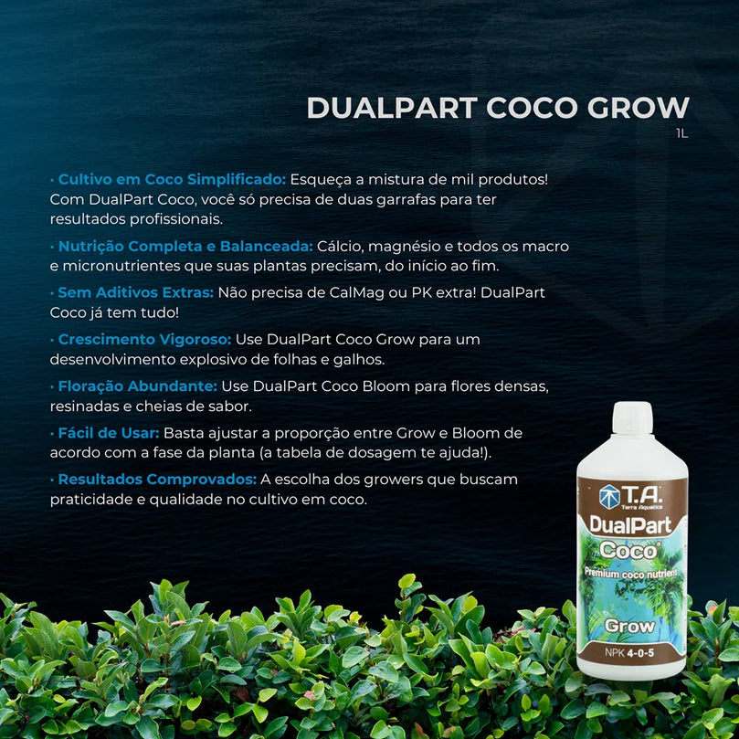 Sim! O DualPart Coco foi especialmente formulado para suprir todas as necessidades nutricionais das plantas em substratos de fibra de coco, onde as deficiências de cálcio, magnésio e potássio são comuns. Ele fornece todos esses elementos numa fórmula balanceada, ajudando a prevenir problemas como folhas amarelas, crescimento lento ou floração fraca, deixando o cuidado com suas plantas muito mais simples e seguro.