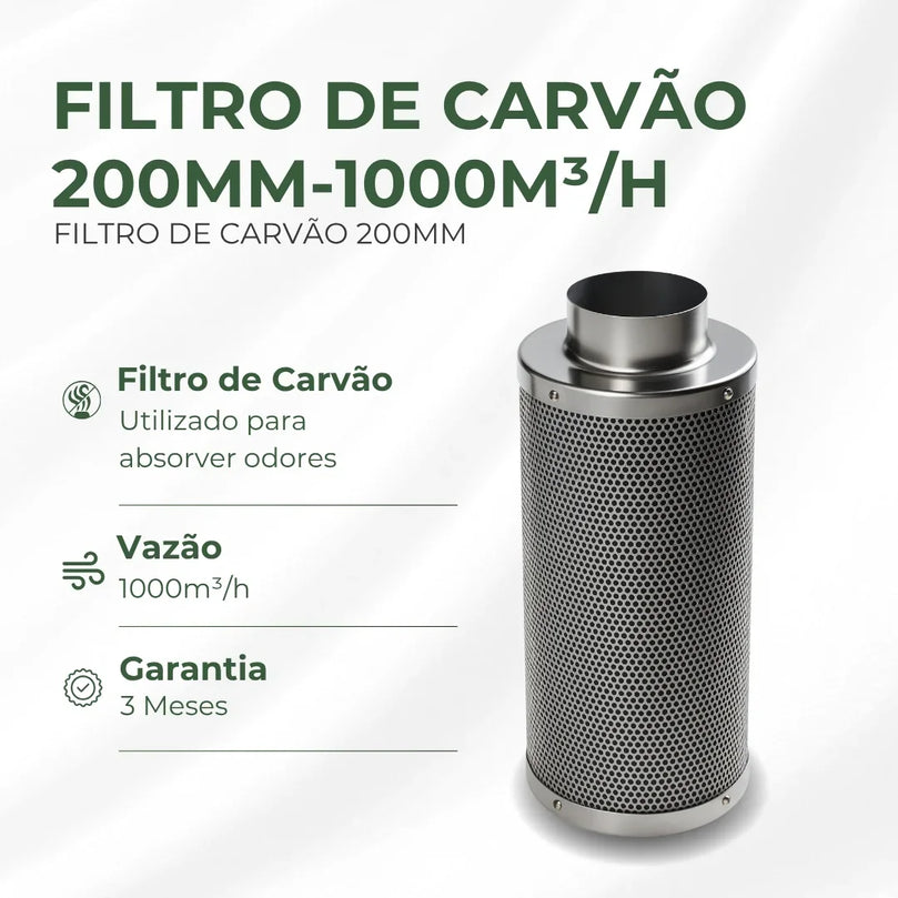 - 01 Filtro de Carvão Ativado Master Plants 200mm - 1000m³/h