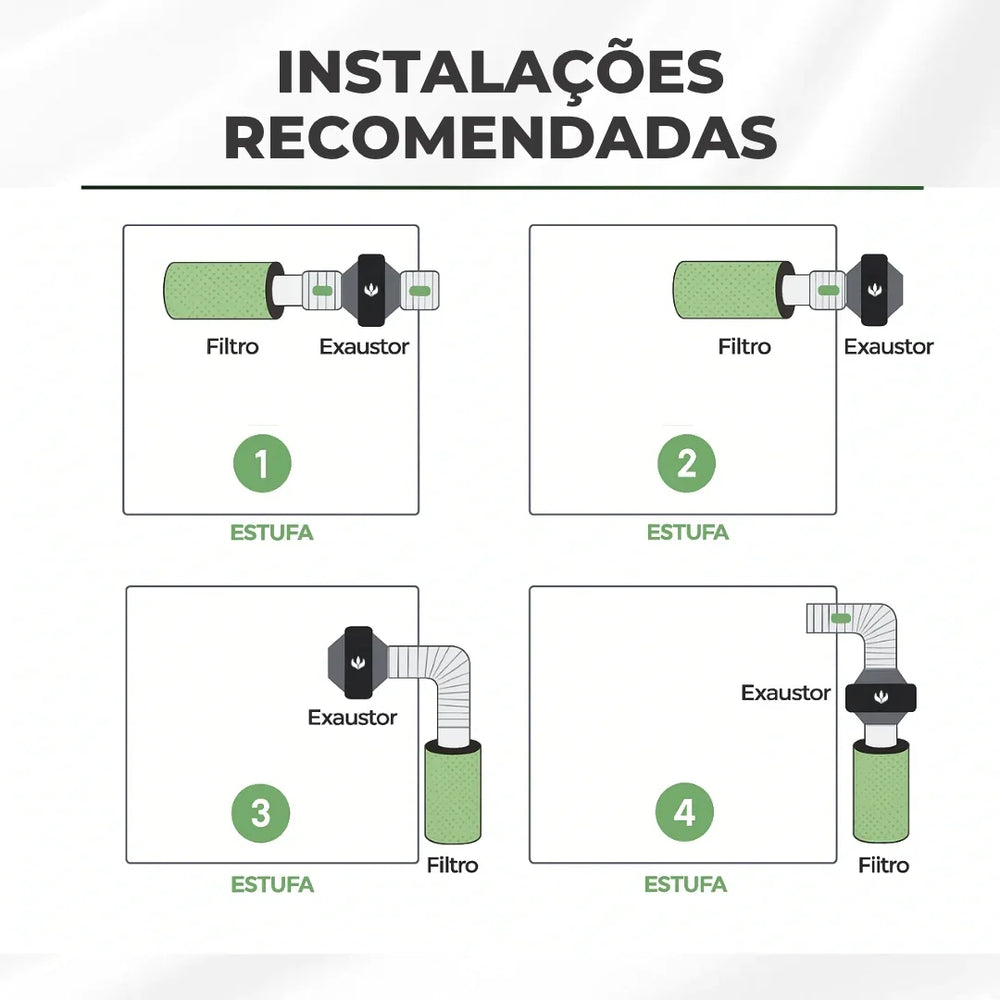 A vida útil do filtro pode variar conforme a intensidade de uso e as condições do ambiente, mas em geral, dura de 9 meses a 1 ano em cultivos indoor comuns. Para manter a eficiência, recomenda-se revisar o filtro regularmente e evitar ambientes muito úmidos. Quando perceber que os odores estão voltando, é hora de substituir o filtro – o carvão ativado não é lavável nem reutilizável.