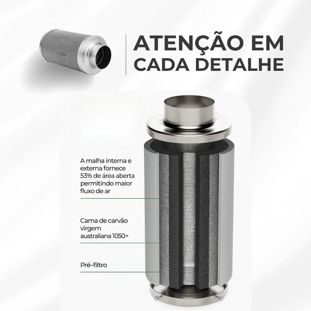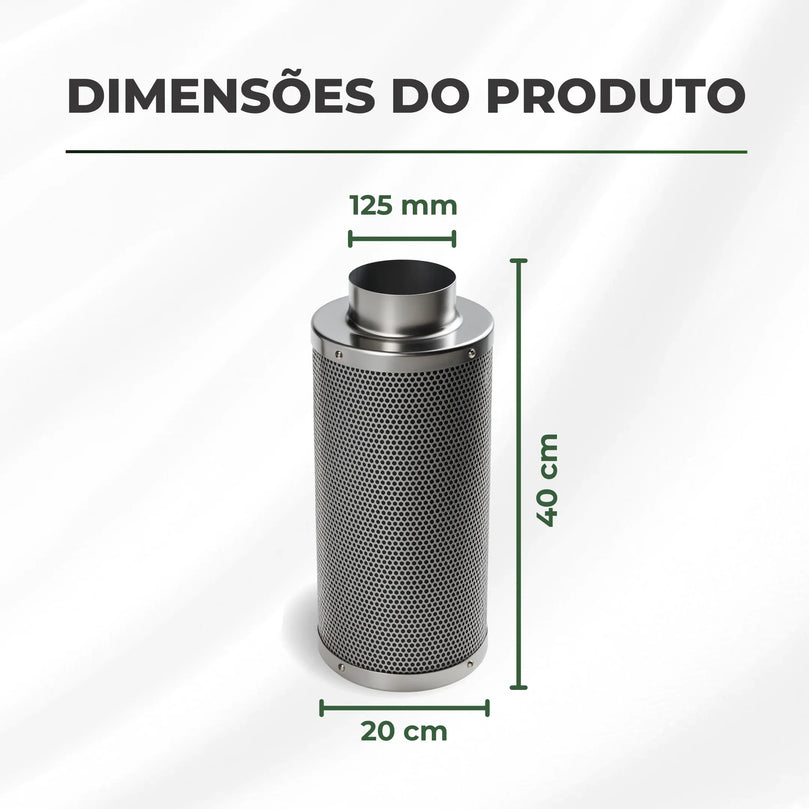 Sim! O filtro de carvão ativado Master Plants 125mm foi desenvolvido justamente para eliminar odores fortes do cultivo indoor, garantindo discrição máxima. Sua alta eficiência filtra até 580m³/h, retendo a maior parte dos odores antes que o ar seja expelido. Para melhores resultados, utilize em conjunto com exaustor de 125mm apropriado e faça a manutenção periódica sugerida.