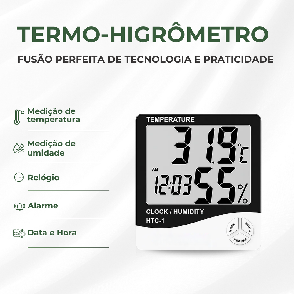 Termohigrômetro Digital Relógio Medidor de Umidade e Temperatura