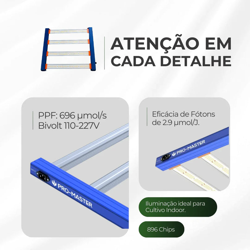 Sim! O Painel de LED já acompanha todos os acessórios necessários para instalação e conexão em série, além de um driver com dimmer embutido para regular a intensidade da luz. Basta seguir o manual e você estará pronto para cultivar sem complicações, com total segurança e garantia de 5 anos.