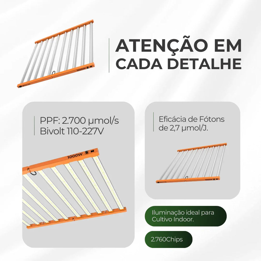 🌱 Quantum Barra 1000W PRO-MID – Potência Bruta para Grandes Escalas