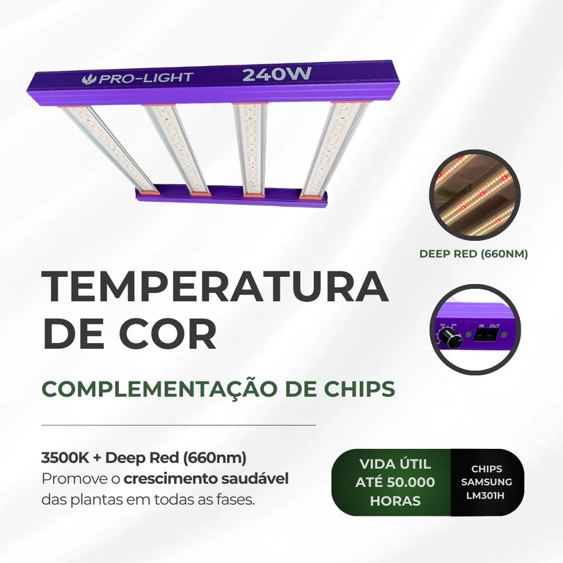 Painel de LED Quantum Barra 240W PRO-LIGHT Chips Samsung LM301H - Cultivo Indoor