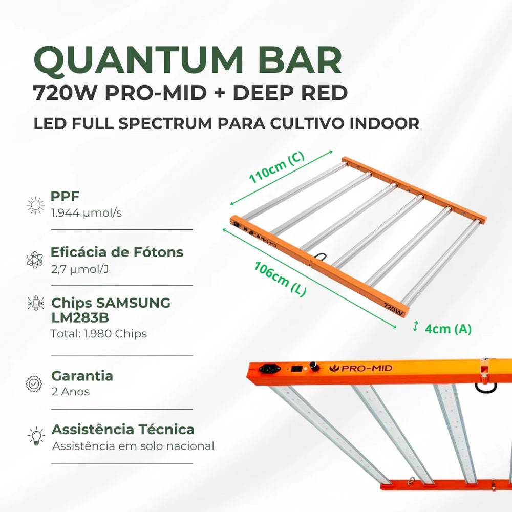 🌱 Quantum Barra 720W PRO-MID – Alta Potência para Grandes Áreas